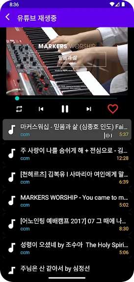 ※ 이 앱은 유튜브 동영상을 사용해서 곡이 재생되기 때문에