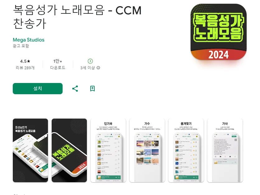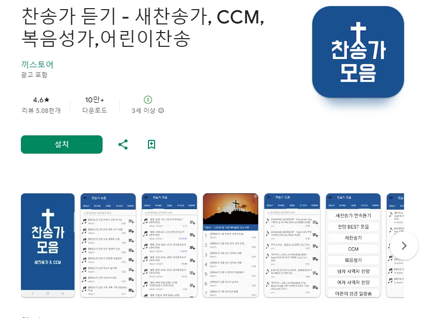 아래는 CCM, 찬양, 복음 성가, 가스펠 어플에 대한 스크린샷 정보입니다.