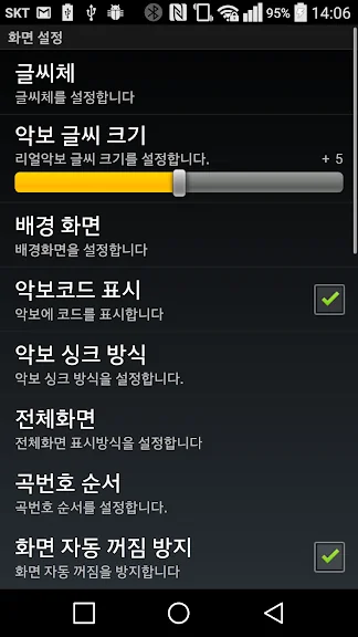 - 악보보기시 코드보기를 설정할 수 있습니다.