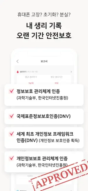 • 첫 생리와 배란 추적기는 국제적인 정보 보안 기준으로 알려진 ISO 27001을 인증받았습니다.