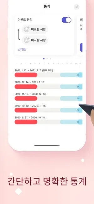 • 여성생리달력으로 주기 및 생리 기간 분석