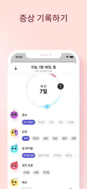 매일 증상과 기분을 기록하는 것을 잊지 마세요! 더 많이 기록할수록 자신을 더 잘 이해할 수 있고 Pinkllama에서 어떤 일이 예상되는지 도와드릴 수 있습니다.