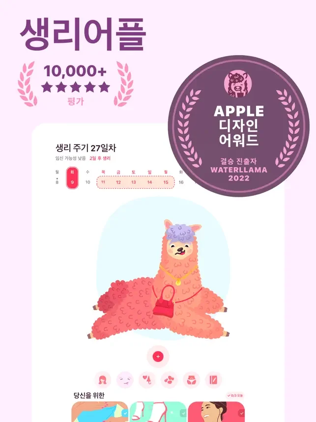 아래는 아이폰 생리주기어플 계산기 Pinkllama 달력 어플 스크린샷 정보입니다. 생리주기어플 계산기 Pinkllama 달력 어플 스크린샷 정보를 확인하고 싶으신분은 아래를 참고하시기 바랍니다.