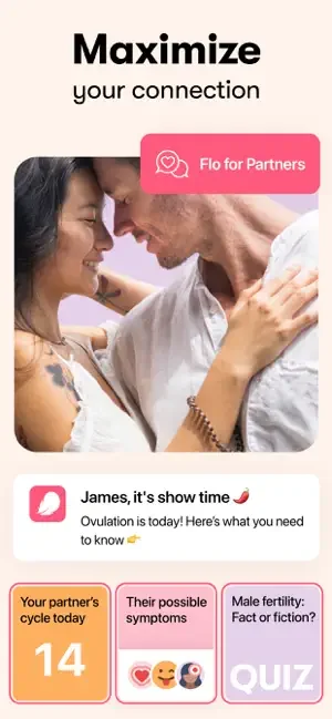 Flo의 새로운 기능: 파트너를 위한 Flo! Flo 계정을 파트너와 연결하여 주기 또는 임신 상황을 공유하세요. 회원님과 파트너 모두의 만족도를 높일 수 있습니다!