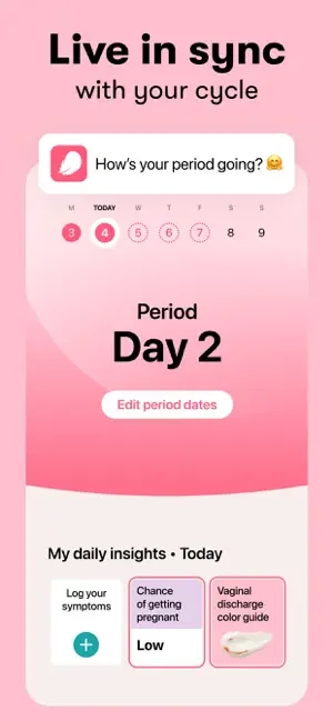 기능의 경우 Pinkllama는 생리가 시작되는 시기를 알려드립니다. 본 앱은 가장 최근 생리 기간 및 주기 길이를 분석해 다음 생리 주기, 가임기 및 배란 날짜를 예측합니다. 또한 어떤 특정일의 임신 위험성도 보여줍니다.