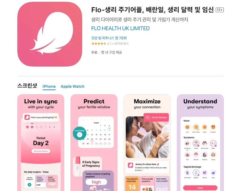 2. 아이폰 Flo-생리 주기어플, 배란일, 생리 달력 및 임신 앱