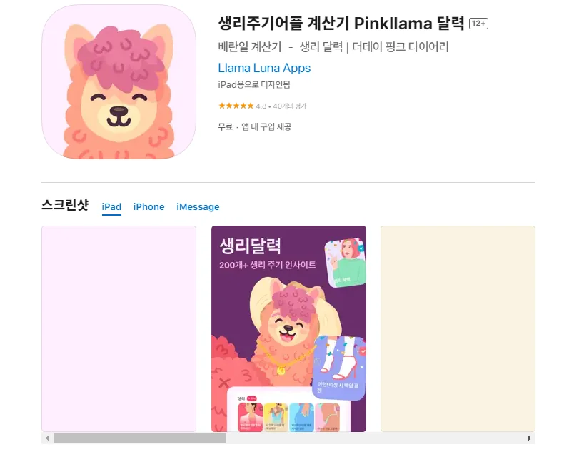 1) 아이폰 생리주기어플 계산기 Pinkllama 달력 어플 소개