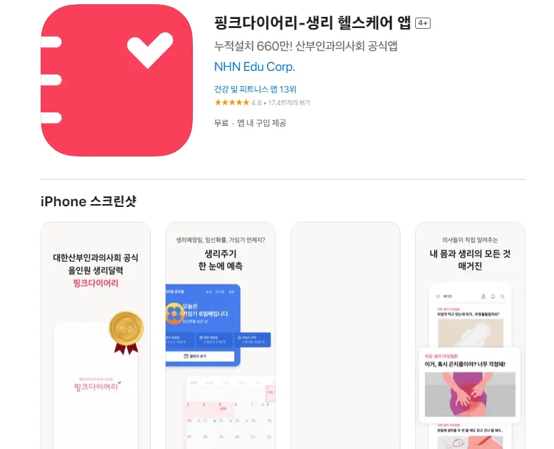 4. 아이폰 핑크다이어리-생리 헬스케어 앱 앱