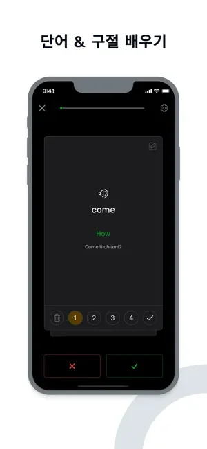 -문장을 듣거나 어느 문구 연습을 누를 수 있습니다.
