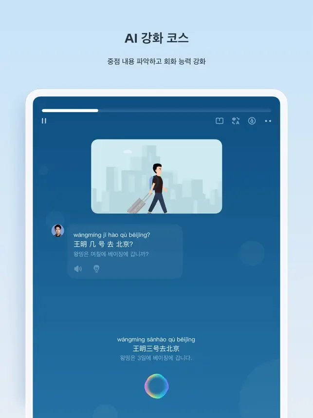 ◉ 최첨단 음성 인식 기능을 사용한 발음 교정을 통해, 중국어 회화 실력을 쑥쑥!