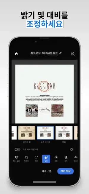 • 단 몇 번의 탭으로 스캔한 문서의 밝기와 대비를 조정합니다.
