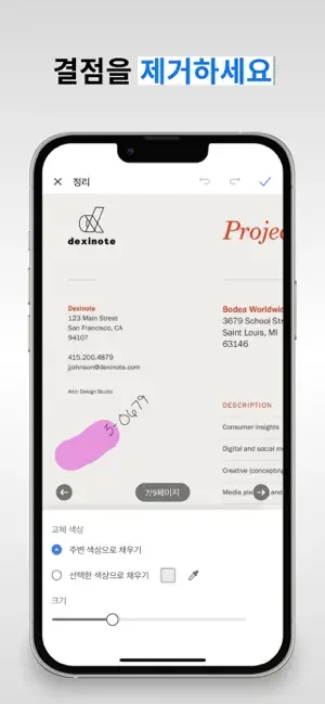 • 결함, 얼룩, 마크, 주름, 심지어 손글씨까지 지우고 수정합니다.