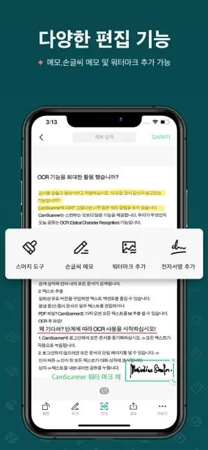 CamScanner는 여러분의 디바이스를, 텍스트를 자동으로 인식하는 (OCR, Optical Character Reader) 강력한 휴대용 스캐너로 만들어줄 뿐만 아니라, 근무와 일상생활 시에 더욱 생산성을 높일 수 있도록 도와줍니다.