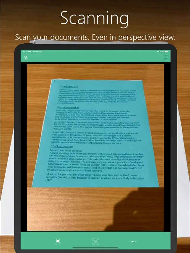 이 작지만 강력한 무료 스캐너 앱은 학생들 또는 회계사, 부동산업자, 매니저, 변호사같은 소규모 기업에 종사하시는 분들이라면 누구든지 꼭 가지고 있으셔야 합니 다. 영수증, 계약서, 종이 노트, 팩스 종이, 서적등 필요한 게 무엇이든 스캔하시고, 여러 장의 PDF또는 JPG파일로 저장하세요.