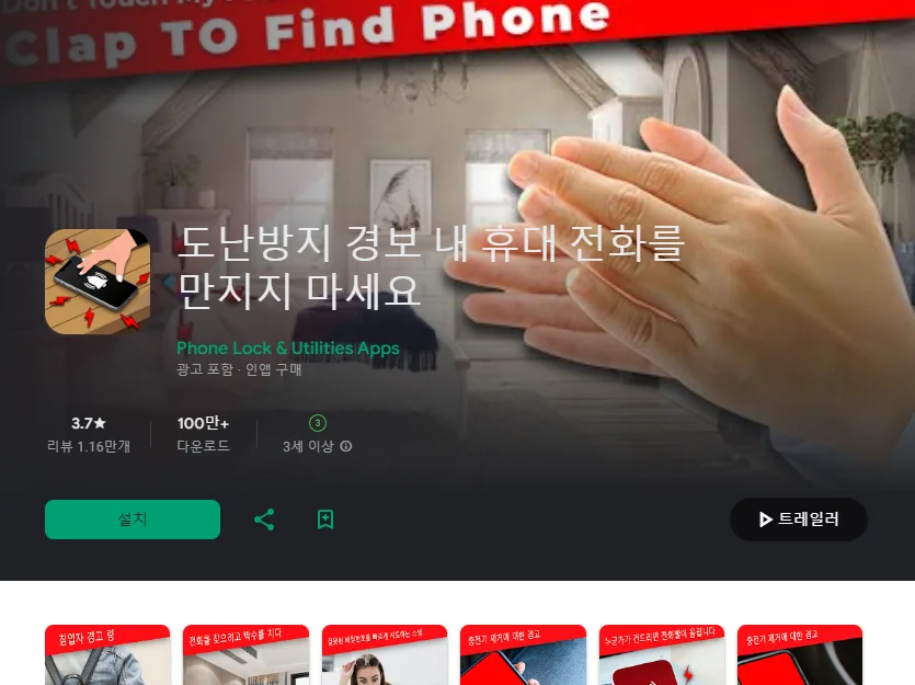 아래는 도난 방지 전화 경보 어플에 대한 스크린샷 정보입니다.