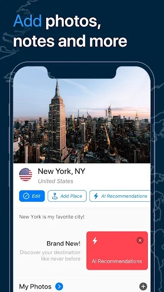 • 여행할 때마다 핀에 사진을 무제한으로 추가하세요.