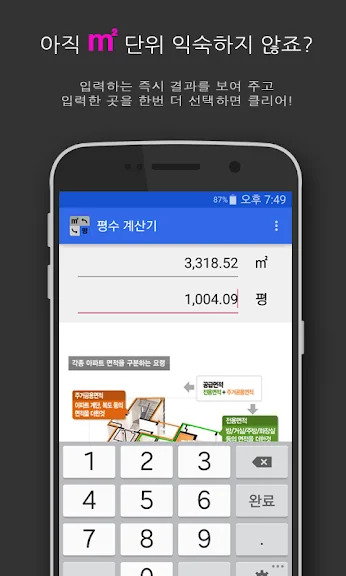 2) 평수계산기 - 평 제곱미터(m2) 환산 어플 스크린샷