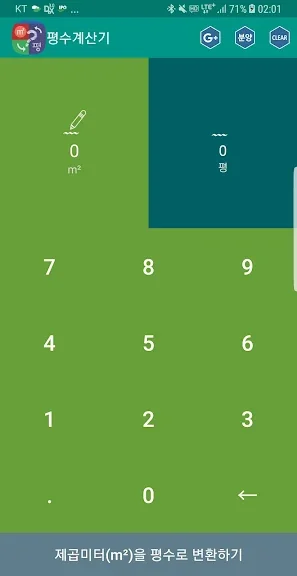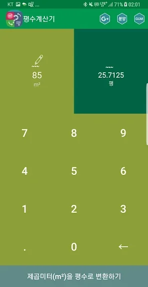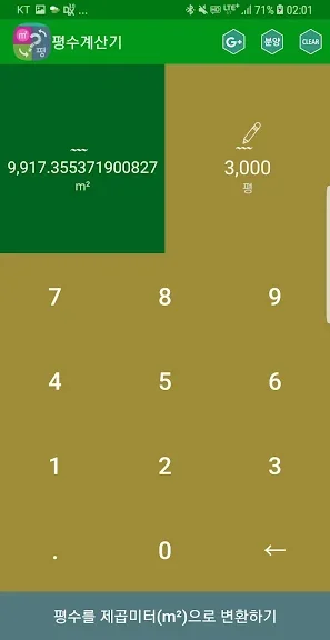 또한 평방미터를 평형으로도 변환을 쉽고 빠르게 실시간으로 확인할 수 있습니다.