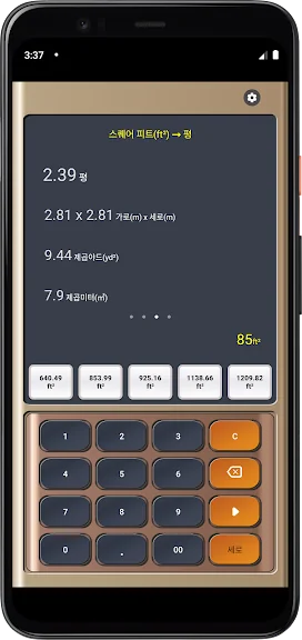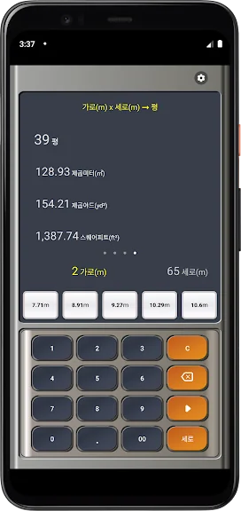 평수 계산기 어플에 대한 스크린샷 정보가 필요하시다면 아래 이미지를 참고하시기 바랍니다.