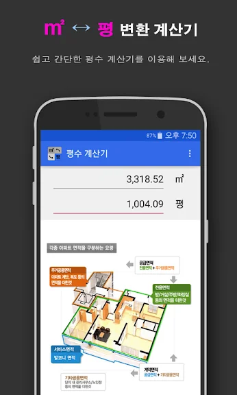 2) 평수 계산기 - 평방, 넓이, 집 면적 계산기 어플 스크린샷