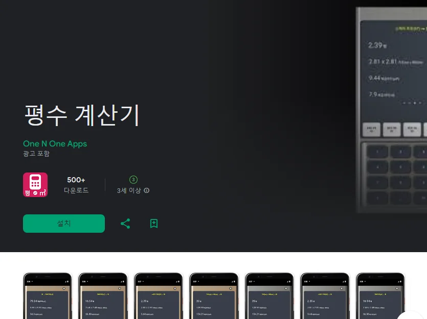이 어플은 구글플레이스토어에서 "평수 계산기"로 검색했을때 3번째로 나오는 어플입니다. 아래는 평수 계산기 어플에 대한 자세한 설명이니 참고하세요.