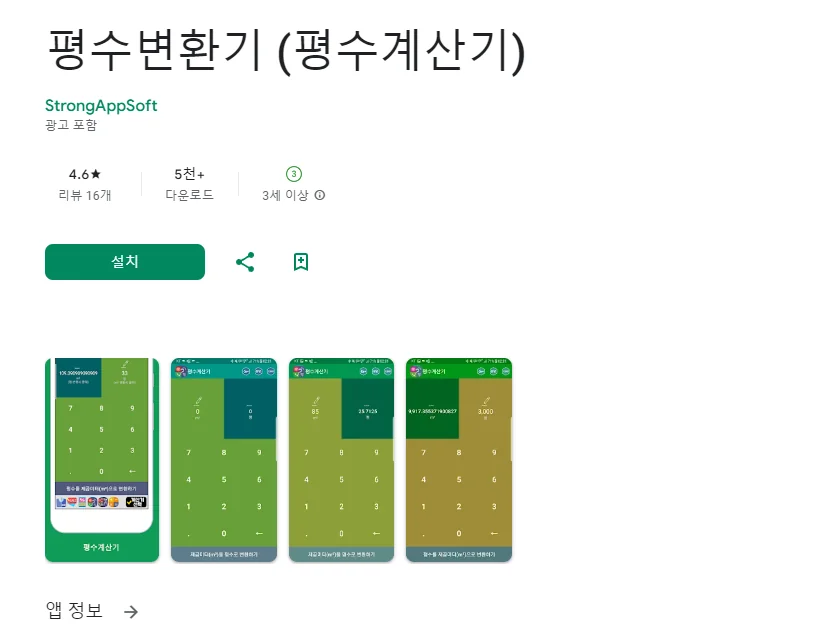 아래는 평수 계산기 어플에 대한 스크린샷 정보입니다.