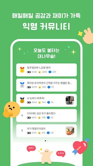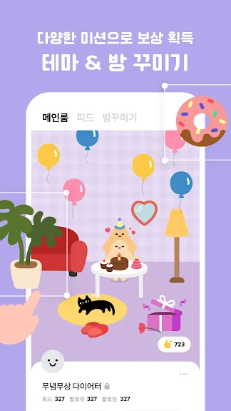 인아웃만의 독특한 다이어트 배틀은 최대 10명이 함께 도전할 수 있는 그룹 모드와 1:1 모드를 제공하여, 다이어트를 혼자가 아닌 함께 하는 재미를 더합니다. 매일 업데이트되는 순위를 통해 건강한 경쟁과 자극을 받을 수 있으며, 미션을 통해 포인트를 쌓아 개성 있는 ‘마이룸’을 꾸밀 수 있습니다.
