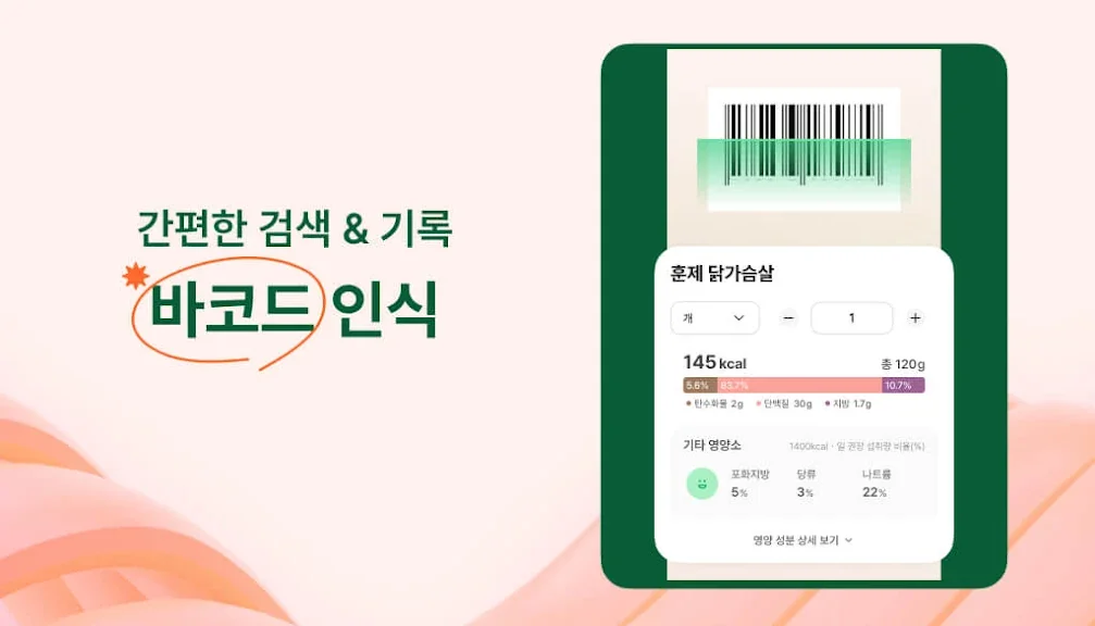 이 앱은 바코드 스캐너를 통해 간편하게 음식 정보를 기록할 수 있으며, Samsung Health, Google Fit, Fitbit 등 다양한 운동 기록 앱과도 연동됩니다. 또한, 푸드 다이어리와 운동 다이어리를 통해 칼로리 섭취와 소모량을 정밀하게 기록할 수 있습니다.