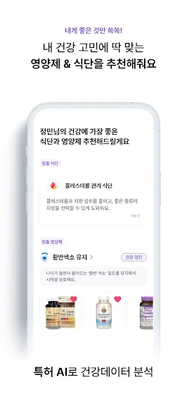 필라이즈는 내 몸 상태와 건강 목표에 맞춰 철저한 관리와 맞춤형 피드백을 제공합니다. 이 앱은 단순한 영양제 기록을 넘어, AI 기반 분석을 통해 개인 맞춤 영양제를 추천하고 부작용 가능성까지 사전에 파악해줍니다. 사용자 건강 데이터를 바탕으로 추천되는 영양제는 3만 개 이상의 국내외 제품 중에서 선택되어, 안전하고 효과적인 섭취가 가능합니다.