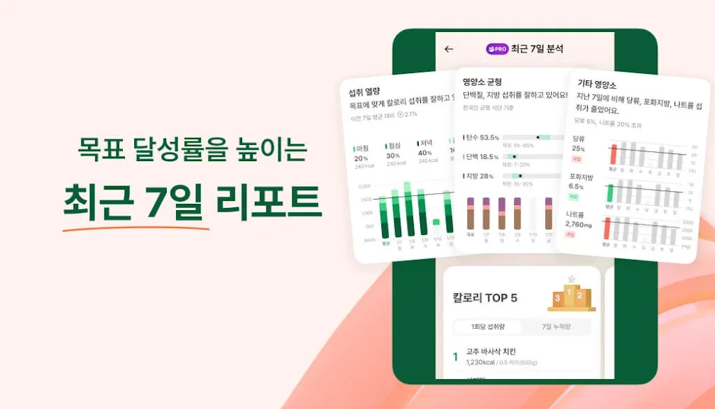 또한, 운동 기록 기능은 다양한 운동별 소모 칼로리를 자동 계산해주며, 삼성헬스와 같은 외부 앱과 연동도 가능합니다. 단순 기록을 넘어 다이어트 목표 설정 기능을 통해 맞춤형 칼로리 섭취와 탄단지 비율을 제안해줘, 개인의 목표 달성을 체계적으로 지원합니다.