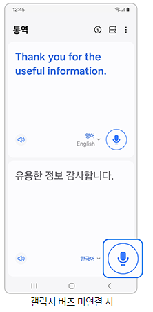 아래 안내를 참고하여 갤럭시 버즈를 활용한 통역 기능을 사용해보세요.