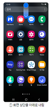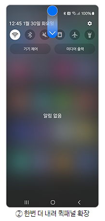 1단계) 화면 상단을 아래로 내리고 한번 더 내려 퀵패널을 확장합니다.