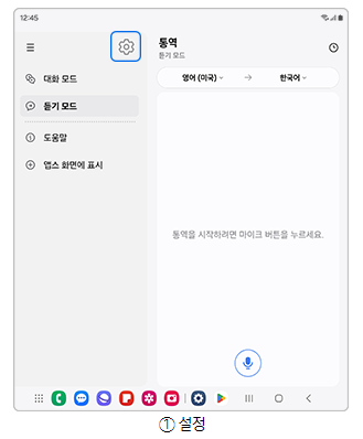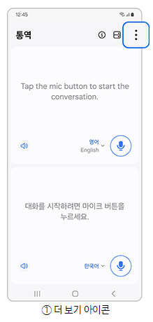 1단계) 통역 앱을 실행하여 더 보기 아이콘을 누른 후 설정을 선택합니다.