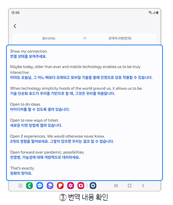 이렇게 해서 갤럭시 ai 번역 사용법 폴더블폰 통역 설정방법에대해 자세히 알아보았습니다. 갤럭시 ai 번역 사용법 폴더블폰 통역 설정방법에 대해 궁금하셨던분들에게는 좋은 정보가 되었을듯합니다. 갤럭시 AI 통역 앱은 단순한 번역 도구를 넘어, 상황과 목적에 맞춘 다양한 설정과 기능을 제공하는 유용한 앱입니다. 듀얼 스크린, 실시간 텍스트 번역, 갤럭시 버즈와의 연동까지 지원해 실제 대화와 비즈니스 상황에서 더 자연스럽게 의사소통할 수 있도록 돕습니다. 오늘 소개한 내용을 바탕으로 갤럭시 AI 통역 앱을 직접 설정하고, 사용해 보세요. 여러분의 일상 속 언어 장벽을 허물어 줄 강력한 도구가 될 것입니다!
