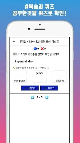 이 앱은 500개 이상의 다양한 영어 패턴을 제공하고, 주말 총정리 및 실전 테스트 기능을 통해 학습 내용을 복습하고 실력을 점검할 수 있습니다. 또한, 하루 5단어씩 배우며 뉘앙스를 정확하게 전달할 수 있도록 돕는 예문도 포함되어 있습니다.