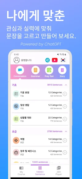 이 앱은 매일 5분씩 영어 회화를 학습할 수 있는 매우 효과적인 방법을 제공합니다. 기초부터 고급 회화까지 10,000개 이상의 문장과 300개 이상의 주제를 통해 맞춤형 학습을 지원하며, 사용자의 관심사에 맞는 커리큘럼을 생성할 수 있습니다.