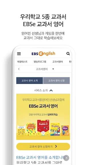 EBSe는 방송 프로그램뿐만 아니라 짧고 간결한 e클립, 재미있는 게임과 단어 학습 콘텐츠도 제공하여 학습을 재미있고 유익하게 만듭니다. 또한, 교과서 영어와 방과후 영어 콘텐츠를 제공해 학교 학습을 보완할 수 있으며, 자기 주도형 학습에 최적화된 서비스를 제공합니다.