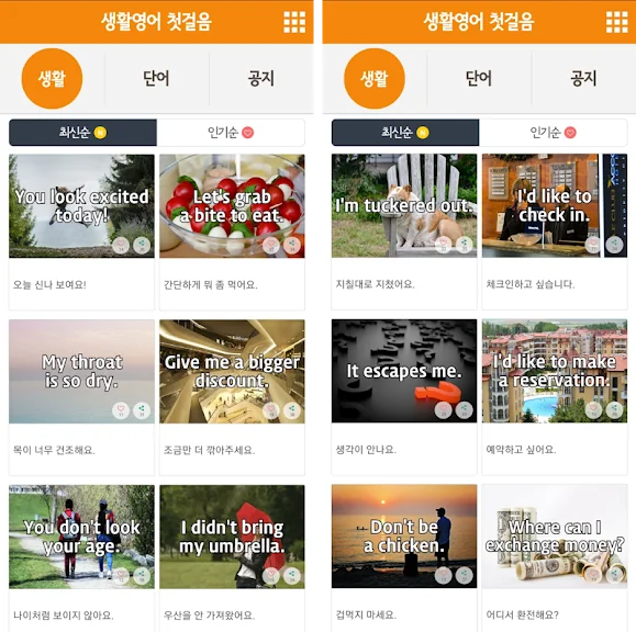 아래는 생활영어 첫걸음 어플에 대한 스크린샷 정보입니다.