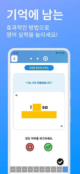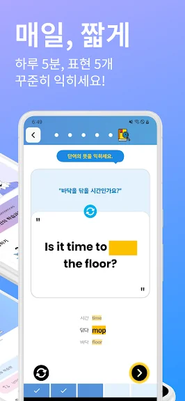"하루 5분 생활영어"는 영어 학습을 짧은 시간에 효과적으로 할 수 있도록 돕는 무료 앱입니다. 매일 하나의 영어 패턴을 배워 짧은 시간 안에 실력을 쌓을 수 있습니다. 패턴 학습을 통해 10문장을 말할 수 있게 되며, 문장 완성 게임으로 자연스럽게 영어를 익힐 수 있습니다.