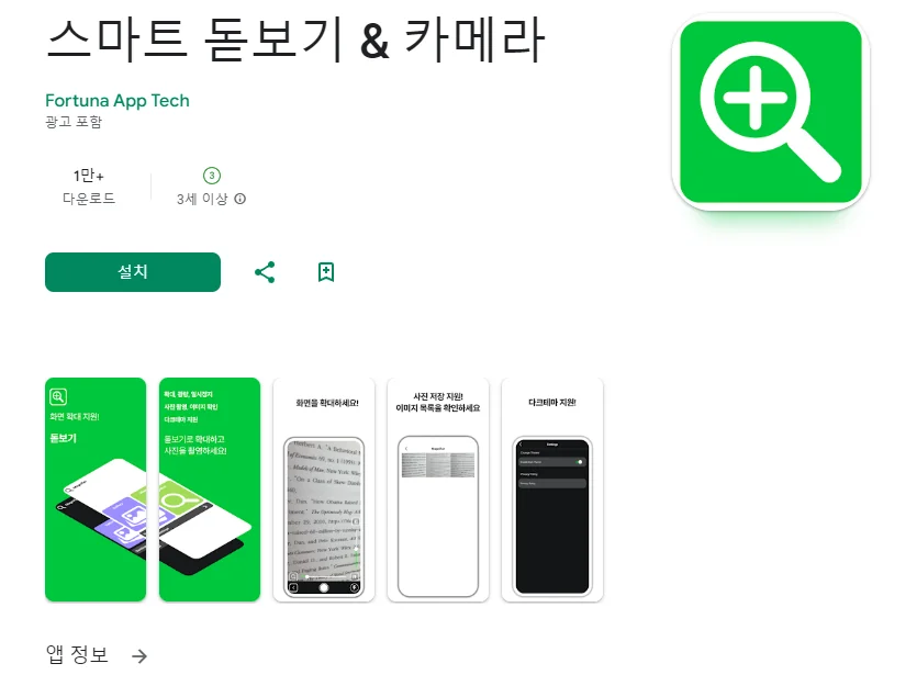 아래는 스마트 돋보기 & 카메라 어플에 대한 스크린샷 정보입니다.