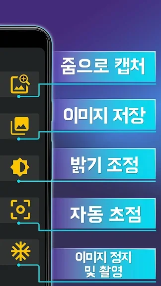 캡쳐 기능, 높은 FPS 모드, 시각 장애인과 많은 더 많은 옵션에 대한 반전 기능 (카메라 플래시 장치) 라이트 모드와 함께.