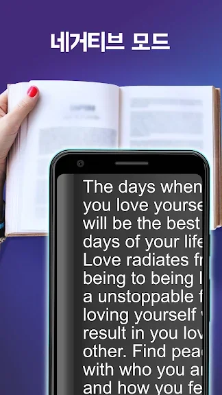 - 흑백, 세피아, 반전 등 글을 읽을 때 자신에게 맞는 영상 효과를 사용하세요.