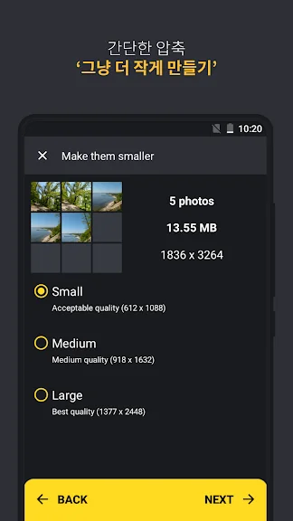 아래는 사진 크기 압축 - MB에서 KB로 어플에 대한 스크린샷 정보입니다.
