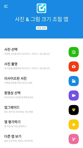 이 어플의 장점은 사진 크기 조정 시 품질 손실을 최소화하고, 압축 후에도 선명한 이미지 품질을 유지한다는 점입니다. 또한, 미리 정의된 크기를 제공하며, 사용자가 원하는 크기도 자유롭게 설정할 수 있습니다.
