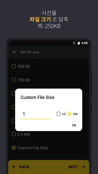 아래는 사진 크기 압축 - MB에서 KB로 어플에 대한 스크린샷 정보입니다.