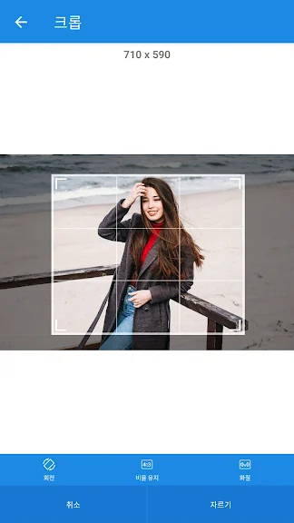 이 앱을 사용하면 간편하게 이미지 크기를 조정할 수 있습니다. 사진을 찍거나 이미지를 열고, 원하는 출력 크기를 설정한 후, 멀티터치 동작으로 이미지를 자를 수 있습니다. 또한, 가로 세로 비율을 유지하려면 간단하게 사슬 아이콘을 눌러 조정할 수 있습니다.