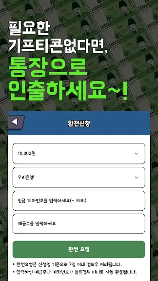 이 앱은 특별한 게임이나 번거로운 절차 없이 누구나 쉽게 돈을 벌 수 있는 방법을 제공합니다. 캐릭터 미션, 게임 참여 등으로 적립할 수 있는 포인트는 현금처럼 사용 가능한 캐시로 전환됩니다. 또한, 무료로 기프티콘을 받을 수 있어 실생활에서 유용하게 활용할 수 있습니다.