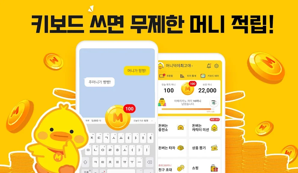"머니키보드"는 키보드를 사용하기만 해도 돈이 적립되는 혁신적인 앱입니다. 간단한 타이핑이나 대화만으로 머니를 적립할 수 있으며, 적립된 머니는 네이버페이 등 다양한 포인트로 교환할 수 있습니다.
