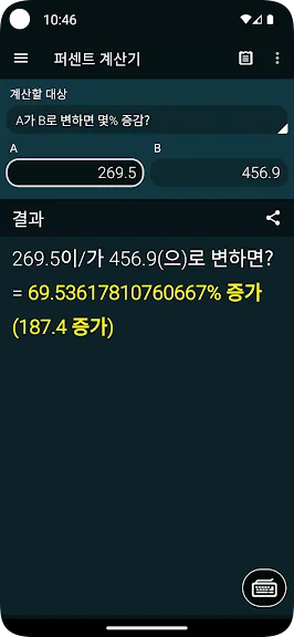 2) 백분율 계산기 어플 스크린샷