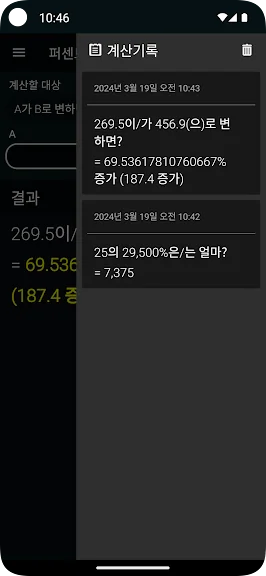 아래는 백분율 계산기 어플에 대한 스크린샷 정보입니다.